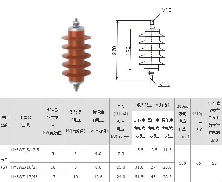 HY5WZ-17 45氧化锌避雷器